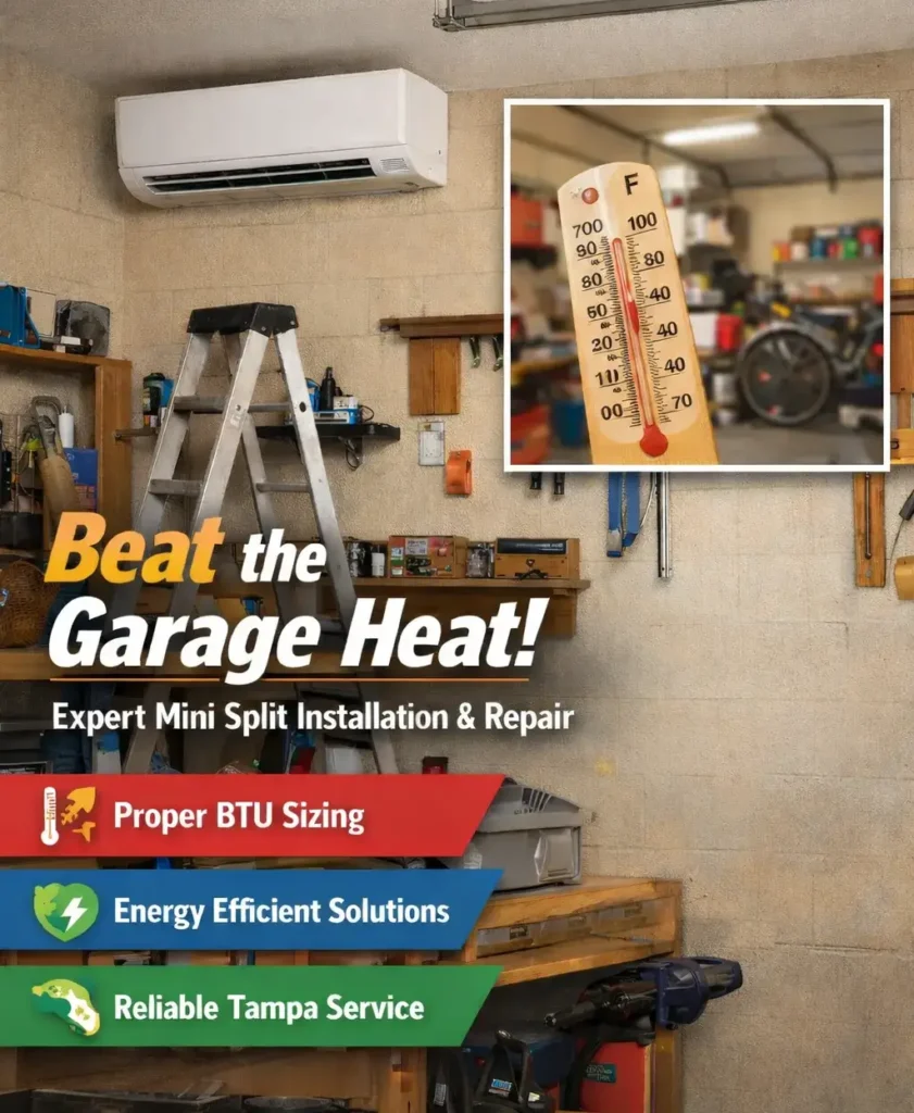 When a garage mini split stops cooling, blows warm air, leaks water, or shows an error code, Tampa homeowners need accurate ductless diagnostics, not guesswork. Tampa garage owners trust our expert ductless mini split repair for attached, detached, and insulated garages, restoring garage climate control, stable cooling, and dependable comfort with local service around you across Tampa and Hillsborough County.